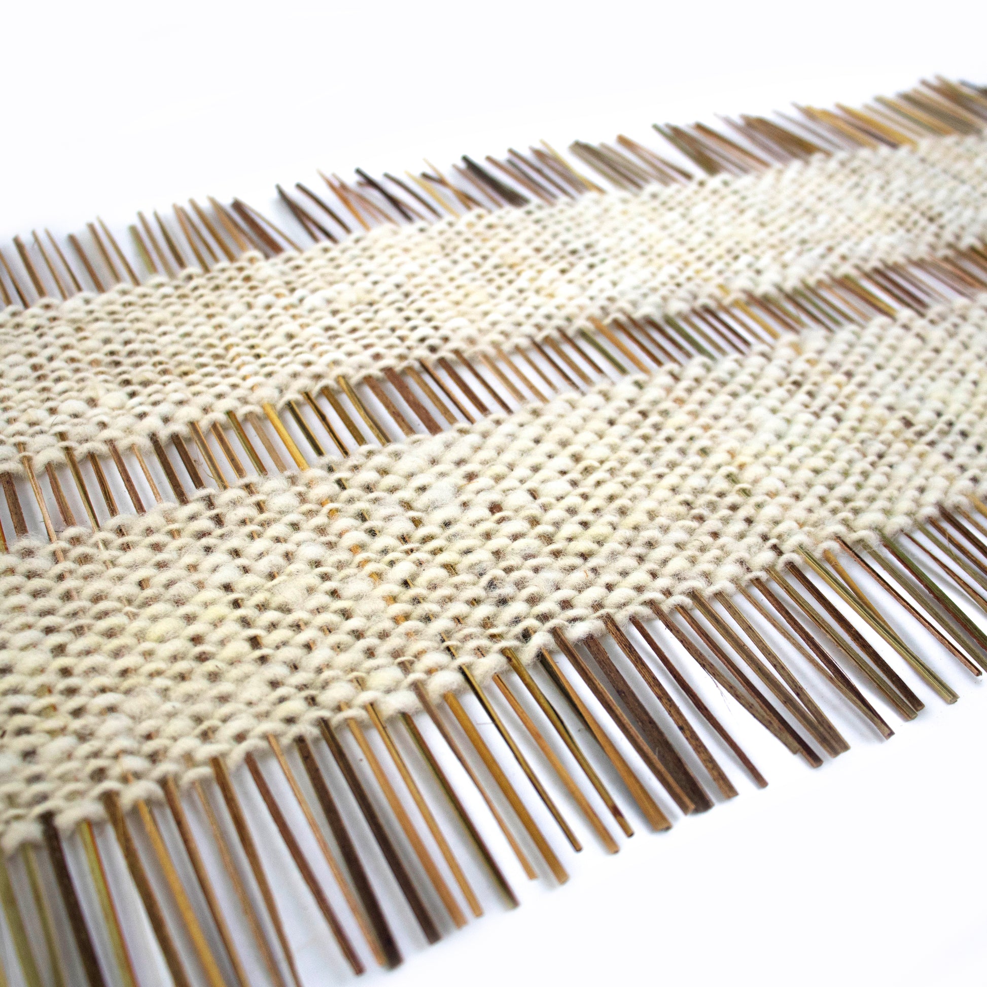Este camino de mesa tejido en telar en Chiloé une fibras vegetales y animales en un equilibrio honesto y lleno de oficio. La trama está hecha con Manila (Phormium Tenax), una de nuestras fibras favoritas por su tremenda abundancia y versatilidad. Recién extraída de la mata, cortada y secada durante largo tiempo antes de ser trabajada con paciencia en el telar. La urdimbre es lana de oveja, utilizada en sus colores naturales o teñida con tintes naturales, dando como resultado piezas que pueden ir en un solo tono, sobrias y muy elegantes, o con sutiles detalles entre los mismos colores.