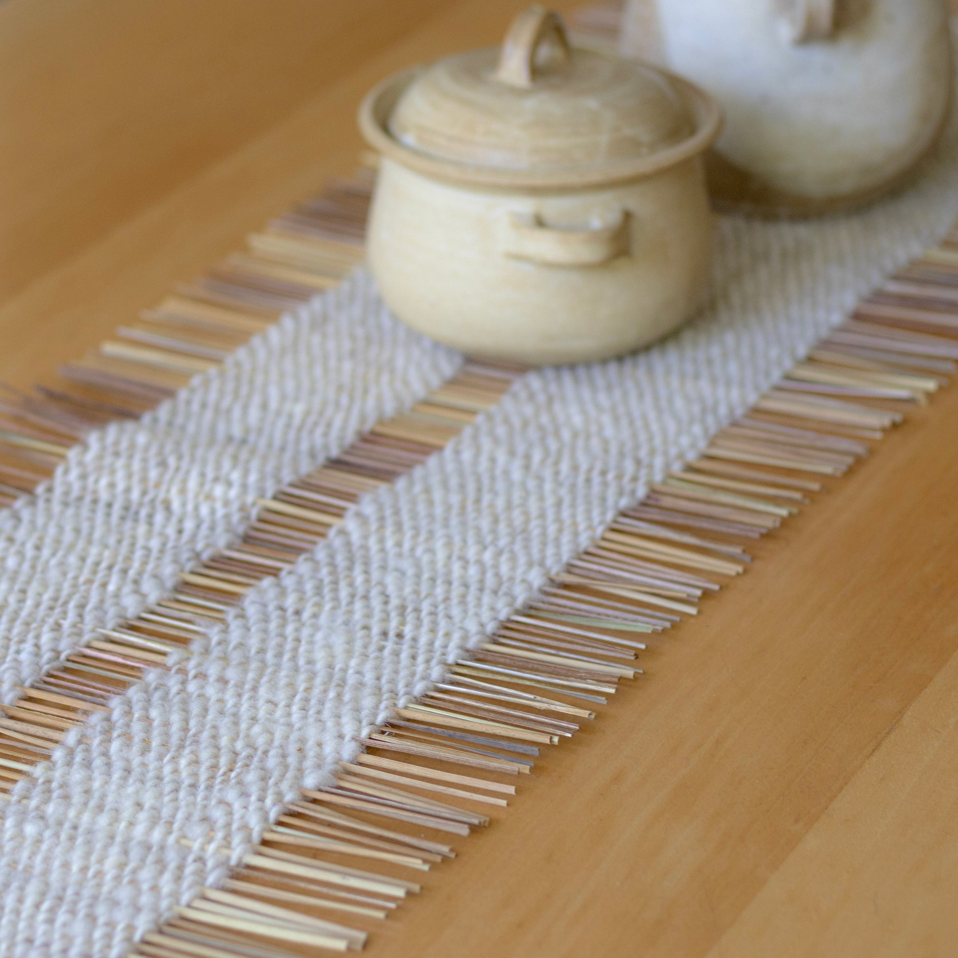 Cada camino es único, reflejo del tiempo, el material y la mano que lo hizo. Es una pieza pensada para vestir la mesa y acompañar el uso cotidiano con materiales nobles y técnicas tradicionales del sur de Chile. Mide 160 cm de largo por 35 cm de ancho.