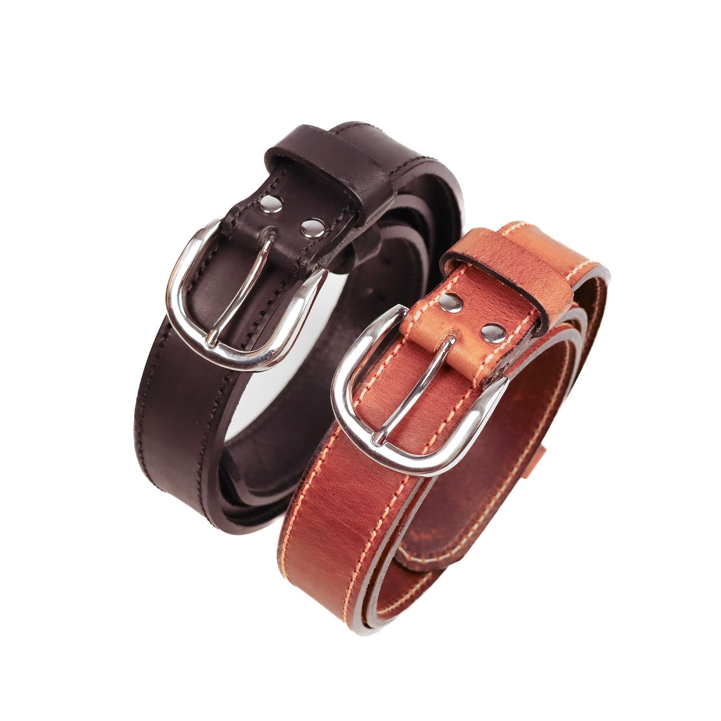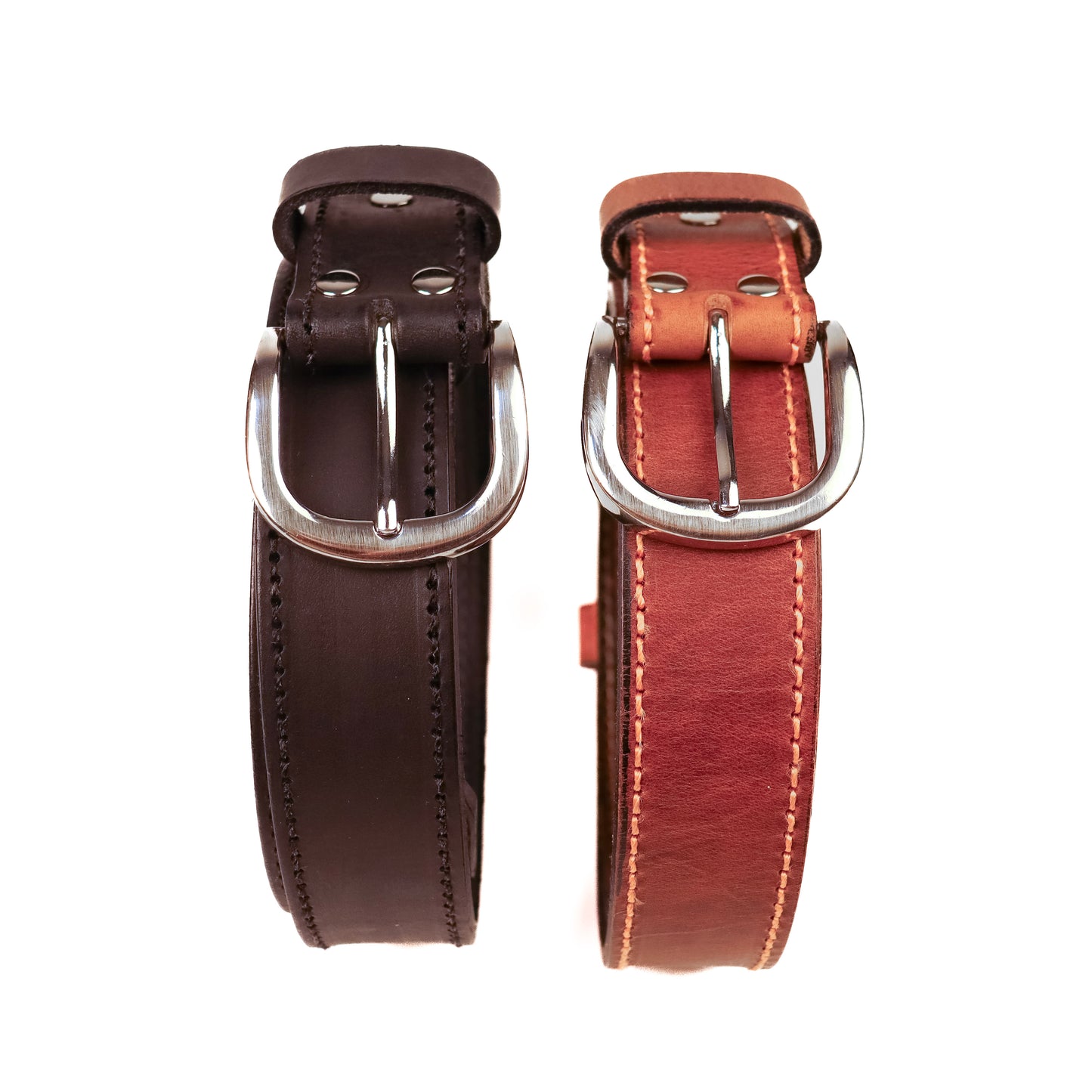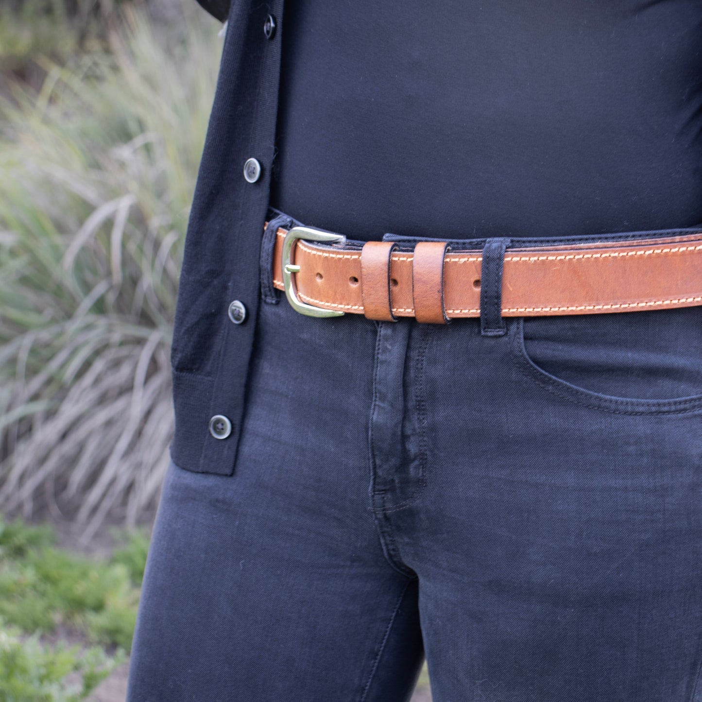 It's a hassle to buy a belt and have it break after a couple of uses. To avoid this, it is important to choose a good material. This belt is 100% leather and will last you forever. You can wear it in brown or black, both 4 cm wide. The brown belt measures 120 cm long and the black one 134 cm.