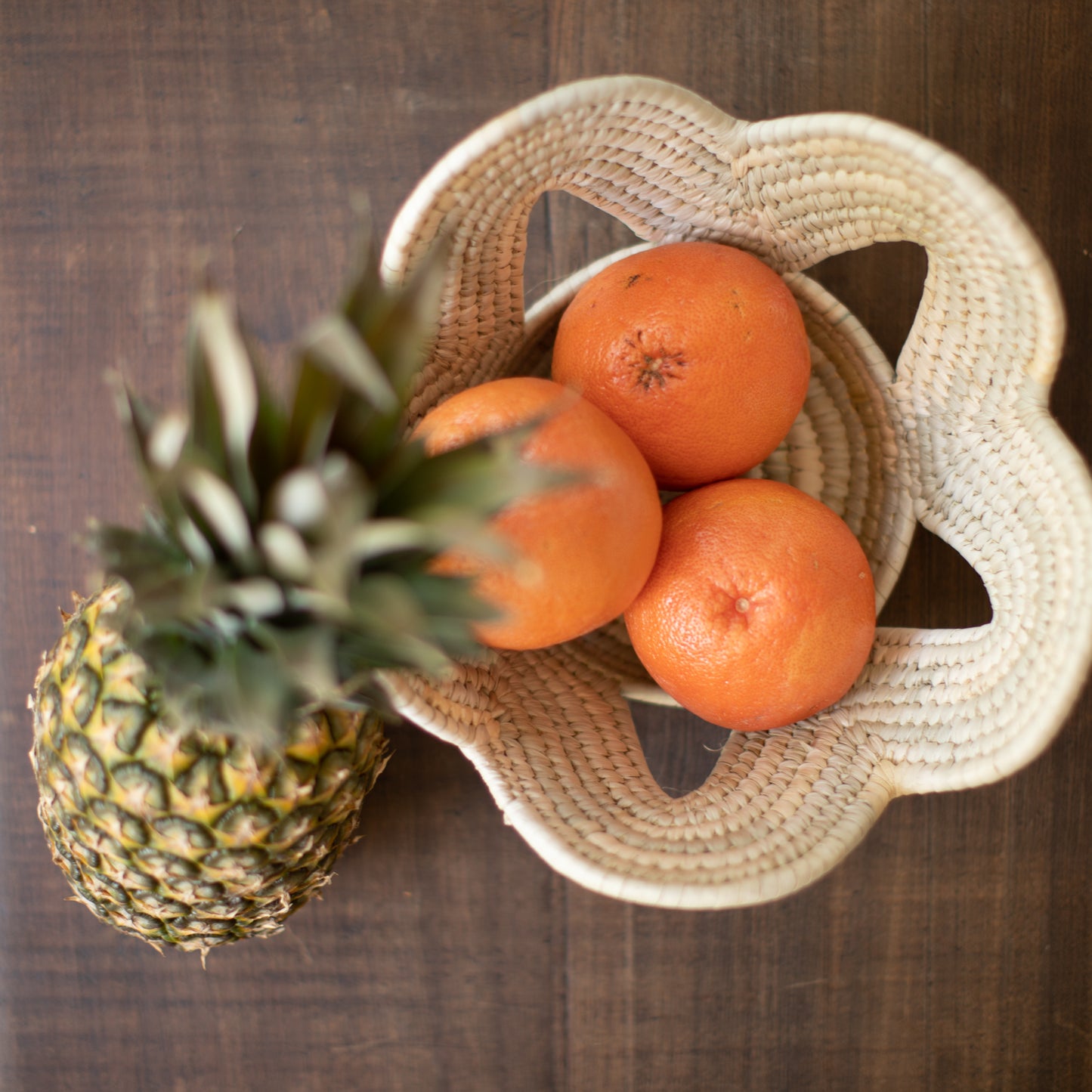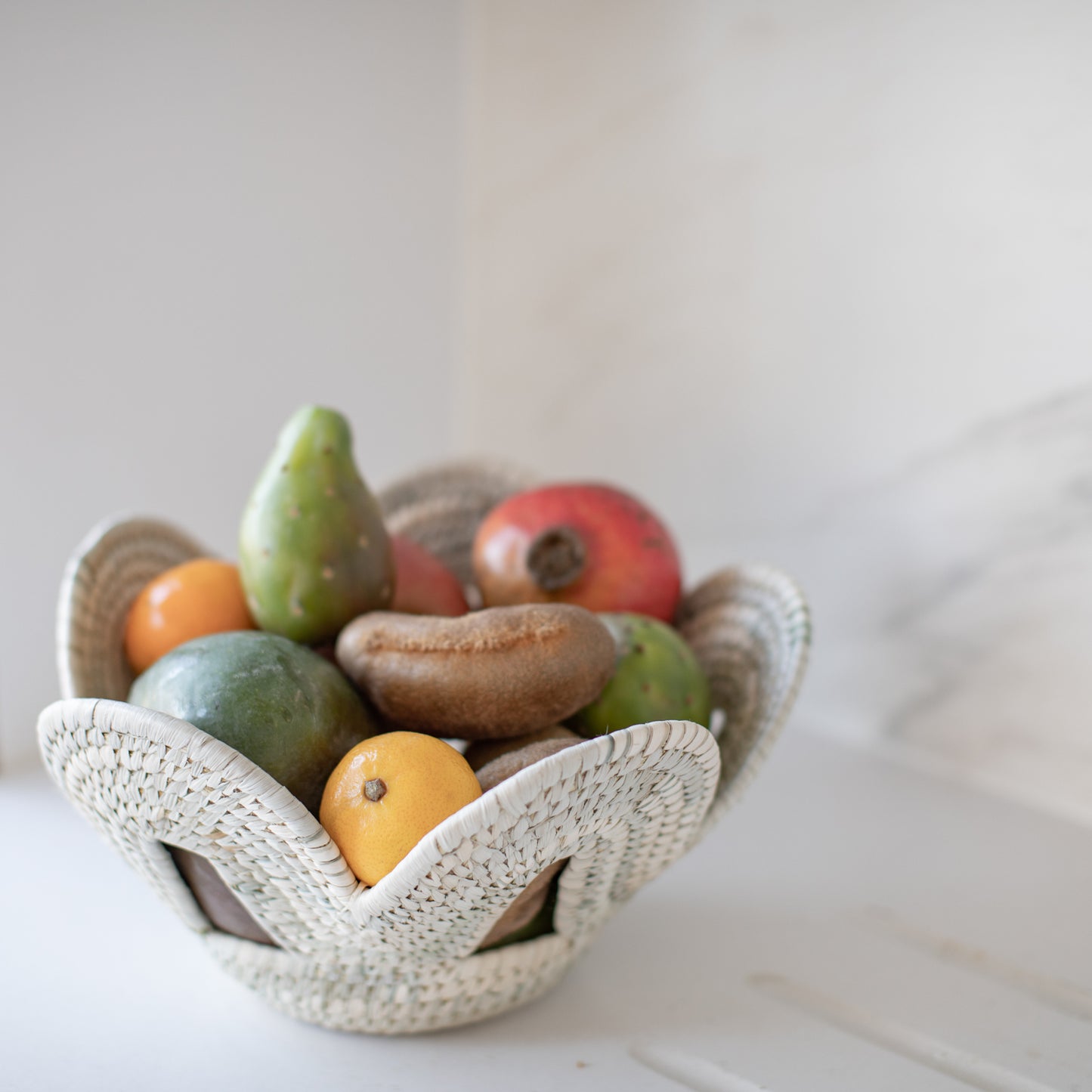 No more hard fruits piled up uncaringly in your refrigerator! This openwork fruit bowl made with natural Ñocha fiber (Eryngium paniculatum, one of our favorite plants, endemic to southern Chile) will look fantastic in your kitchen or dining room, it will let the fruit breathe and allow you to delight in its colors and aromas. It measures 14 cm in diameter at its base, 28 cm in diameter at its top and 17 cm high.