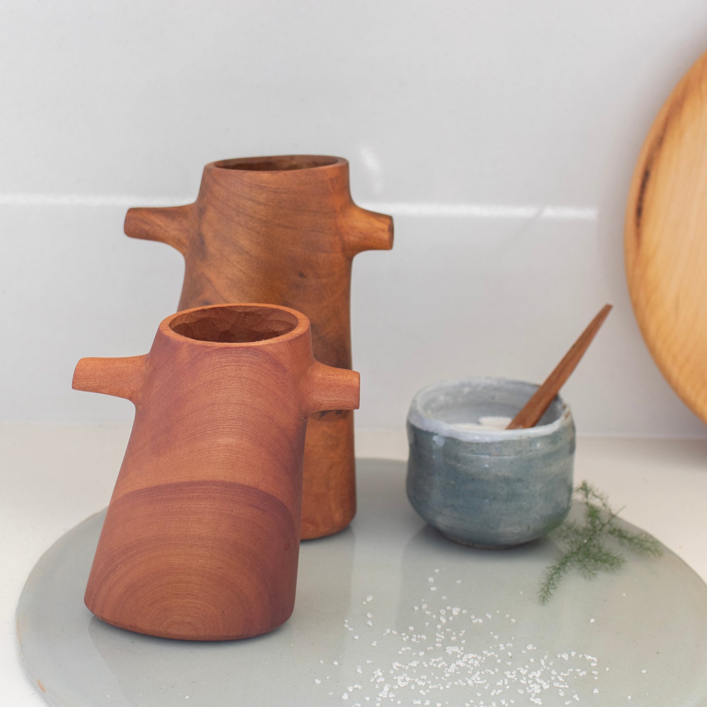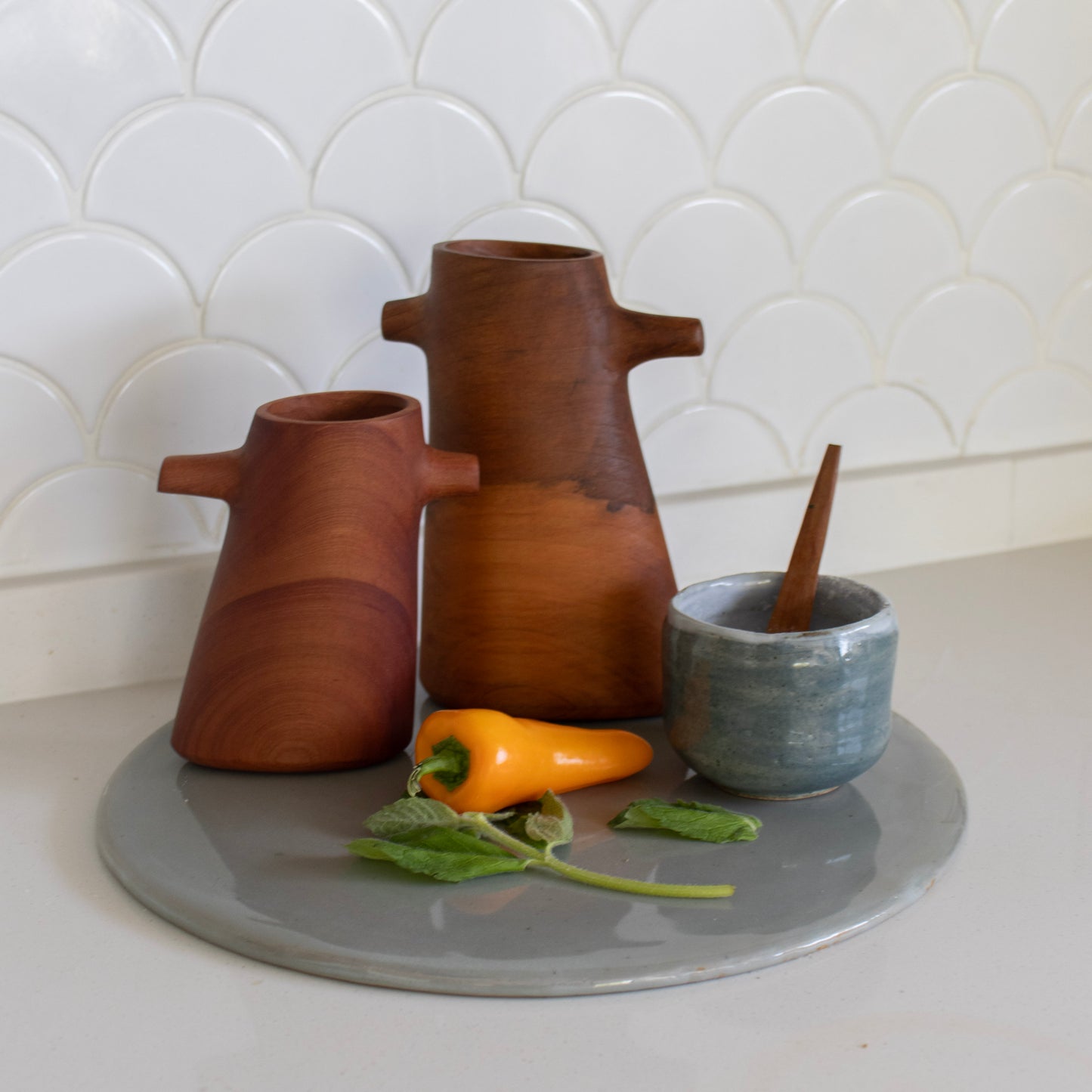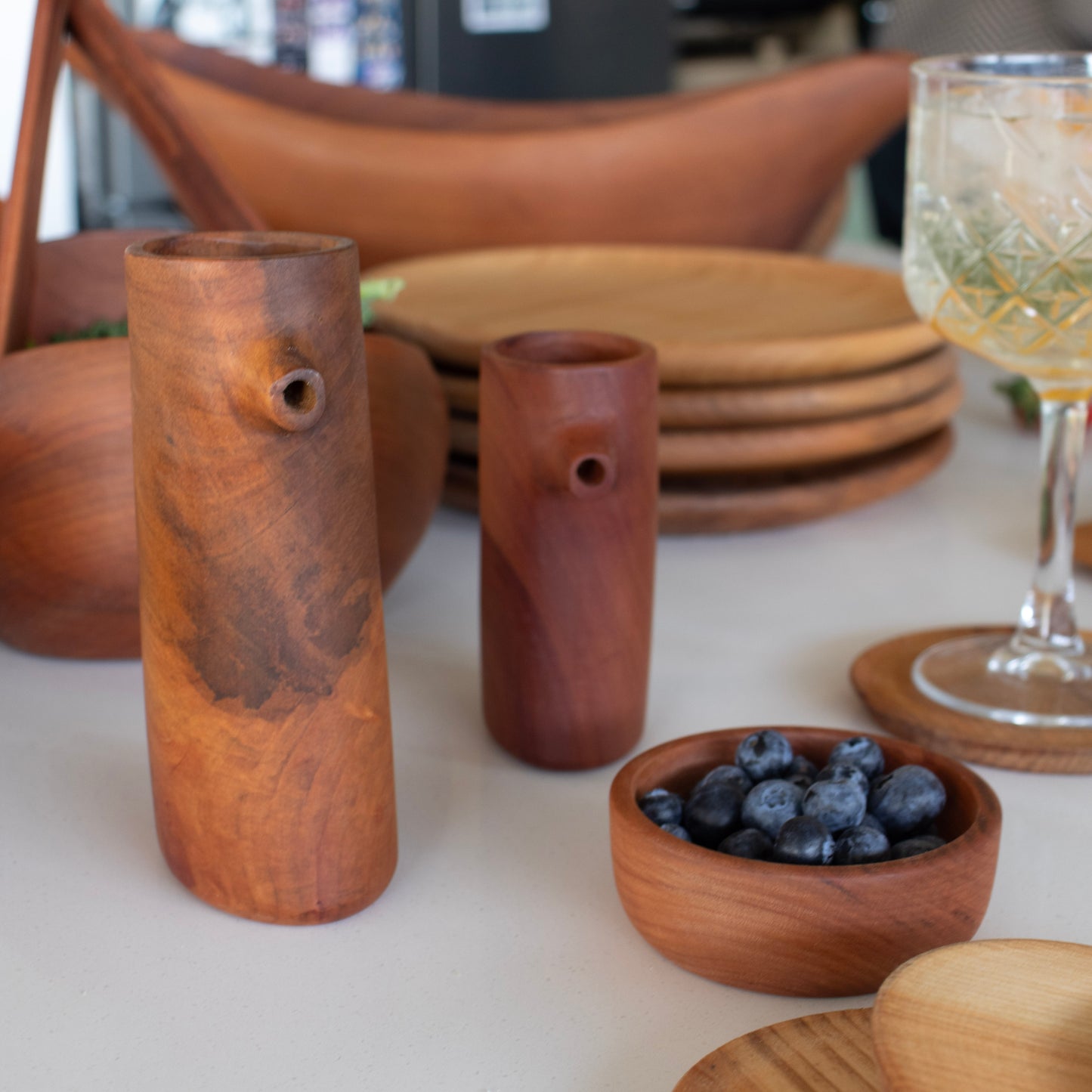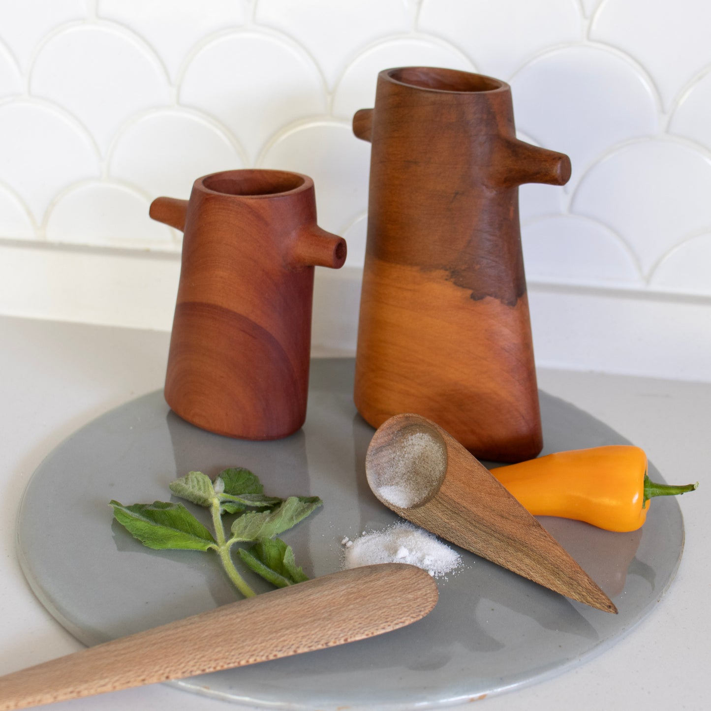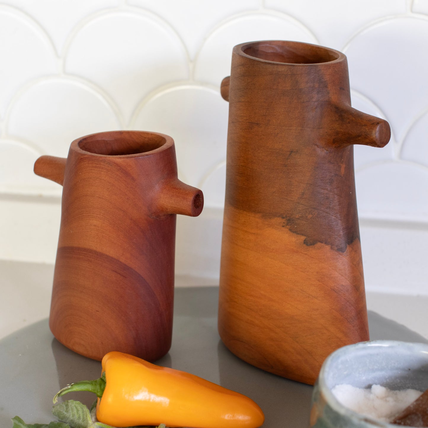 Estas elegantes alcuzas de madera de raulí son perfectas para realzar tu experiencia culinaria y dar un toque especial a tus comidas. Provenientes de la hermosa región de La Araucanía, estas alcuzas son verdaderas joyas artesanales que combinan la belleza natural de la madera con la funcionalidad práctica. Nuestra alcuzas grandes, con una altura de 18 cm, y las medianas, con una altura de 12 cm, son el complemento ideal para tu cocina. Además de su diseño atractivo, estas alcuzas están hechas con madera de raulí, una madera nativa chilena conocida por su durabilidad y resistencia al paso del tiempo. ¡Ahora podrás añadir y dosificar tu aceite de forma elegante y precisa!