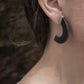 Una luna negra de cuerno de buey, oscura como futuro, medio transparente, semi opaca, misteriosa, inabordable. Una aplicación de plata sólida 950 (95% de plata y 5% de aleación) termina esta fina pieza de 5 cm. de alto por 3 cm. de ancho.