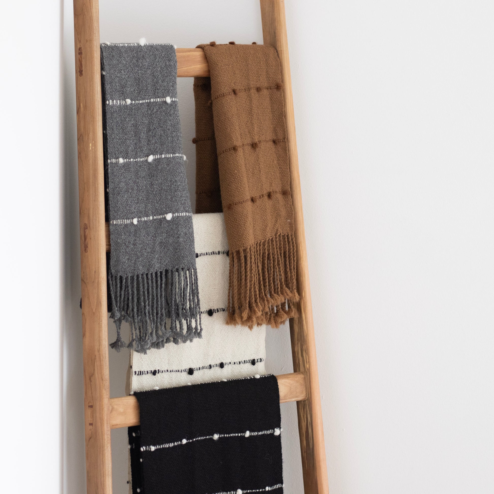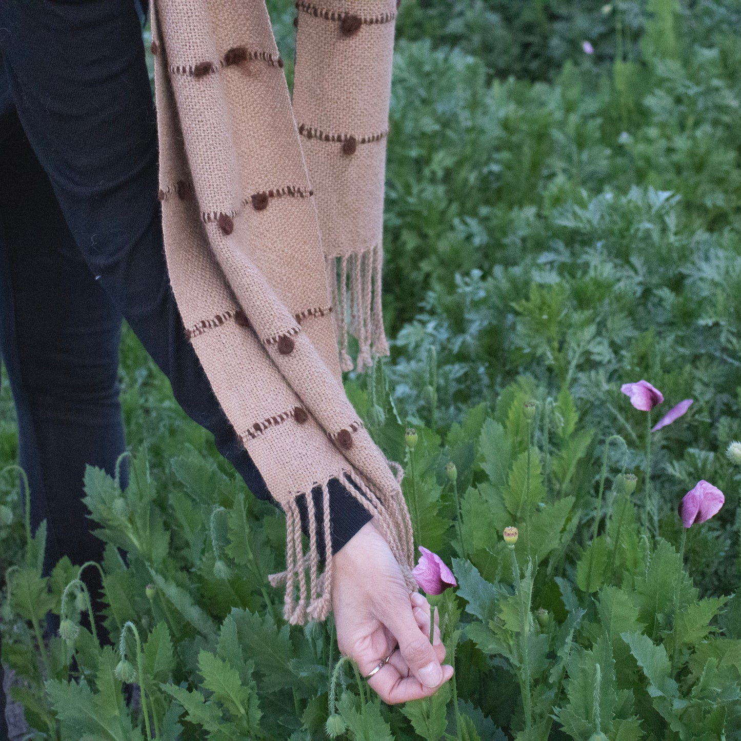 Amamos las bufandas de alpaca 🦙. Son livianas y tan cómodas que no se sienten, y no entiendes por qué todo el mundo te mira el cuello. Son tejidas a telar con lana pura de alpaca andina, suaves como brisa cálida del norte y teñidas en sobrios colores naturales. Este diseño es de adorables pompones de vellón que sobresalen de unas líneas delgadas, en colores combinados y con final de lindos flecos. Mide 30 cm de ancho y sus 170 cm de largo la hacen versátil para rodear tu cuello de muchas maneras! Y recuerda que son Unisex como los nuevos tiempos 😉