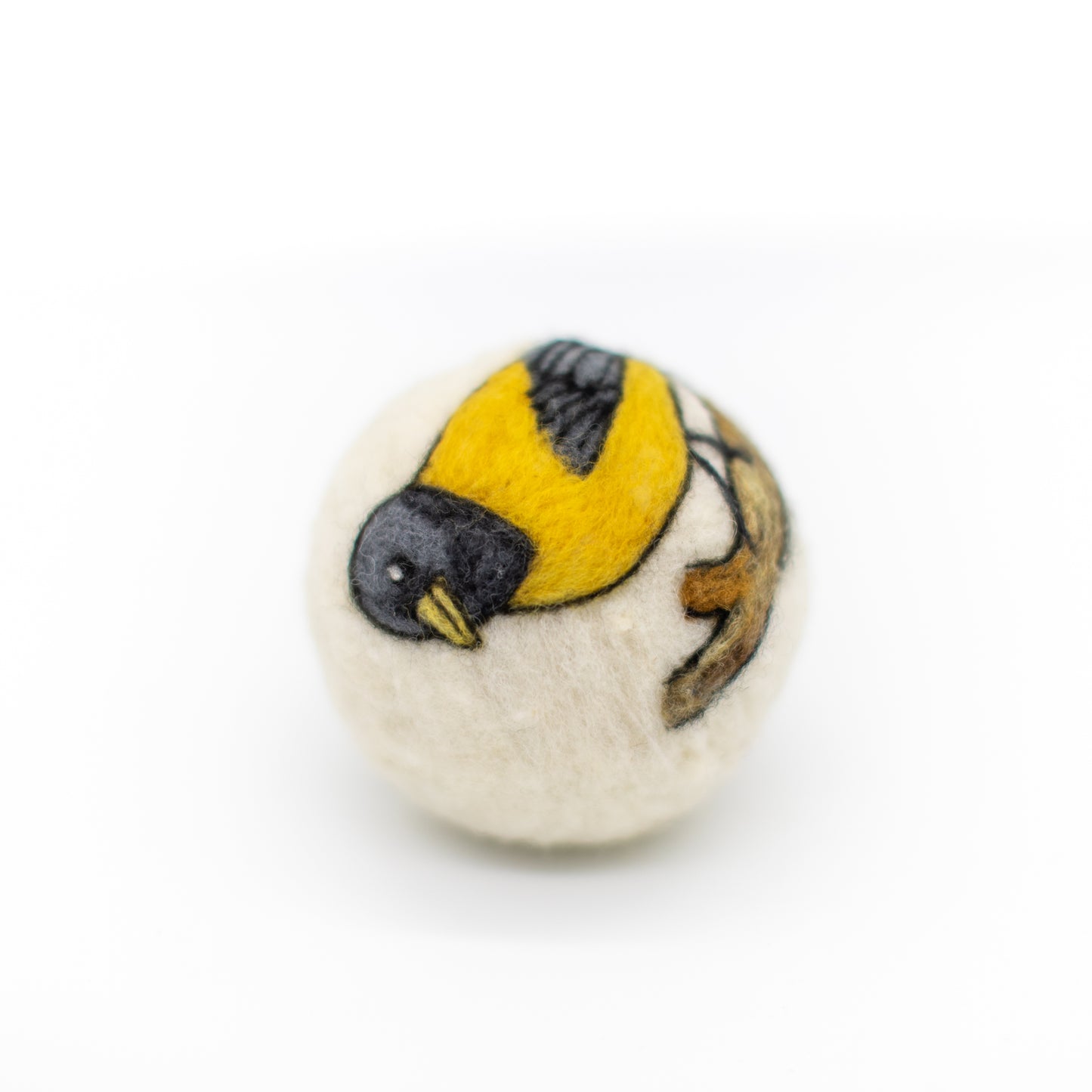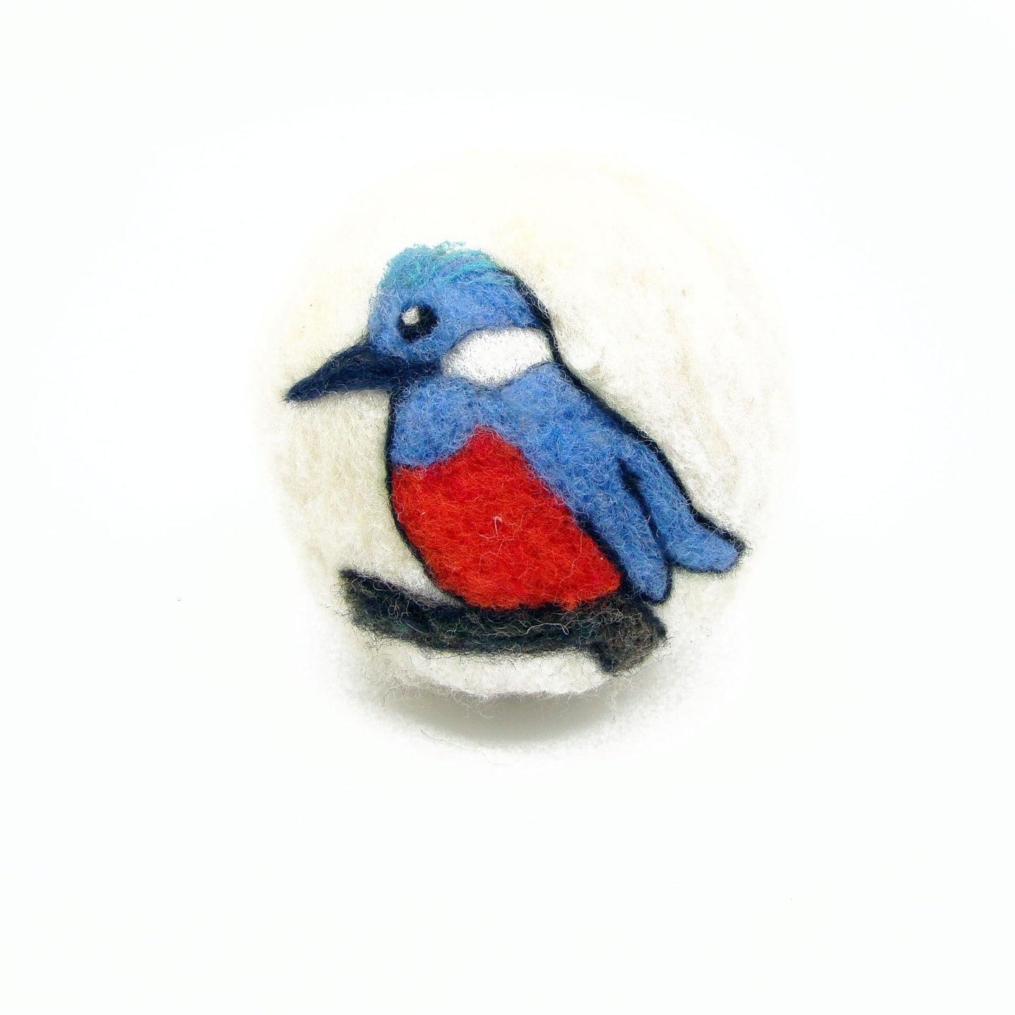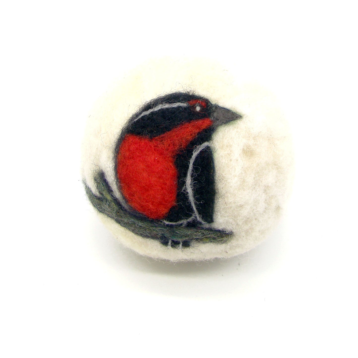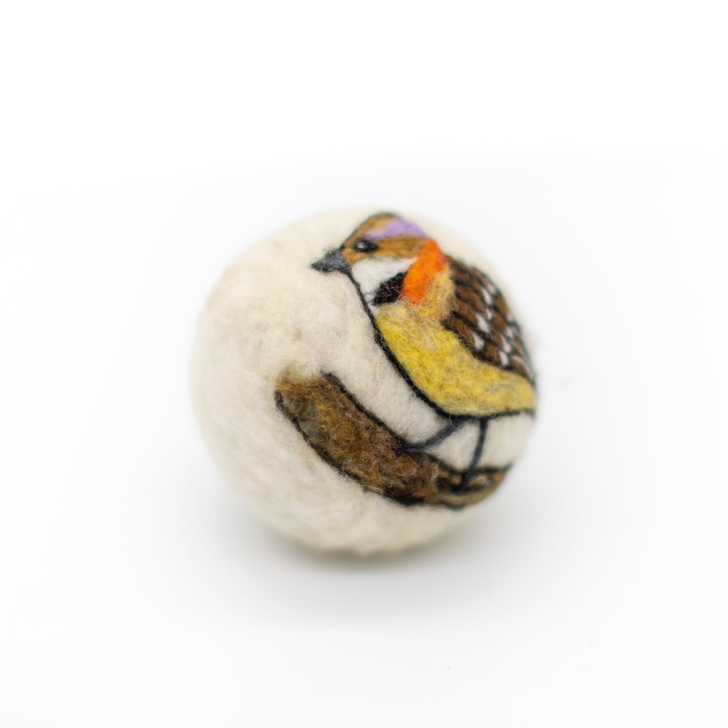 Esfera confeccionada en vellón con la técnica de fieltro. Es blandita y suave, lo que la hace perfecta para niños o incluso para que juegues con tu gato!. Cada una tiene un diseño de pájaros chilenos confeccionados con la misma técnica. Dentro de la colección puedes encontrar pájaros chilenos como la Loica y el Chucao. Además, entre su relleno tiene lavanda, convirtiéndola no solo en un objeto decorativo, sino también aromático. Miden aproximadamente 10 cms de diámetro.