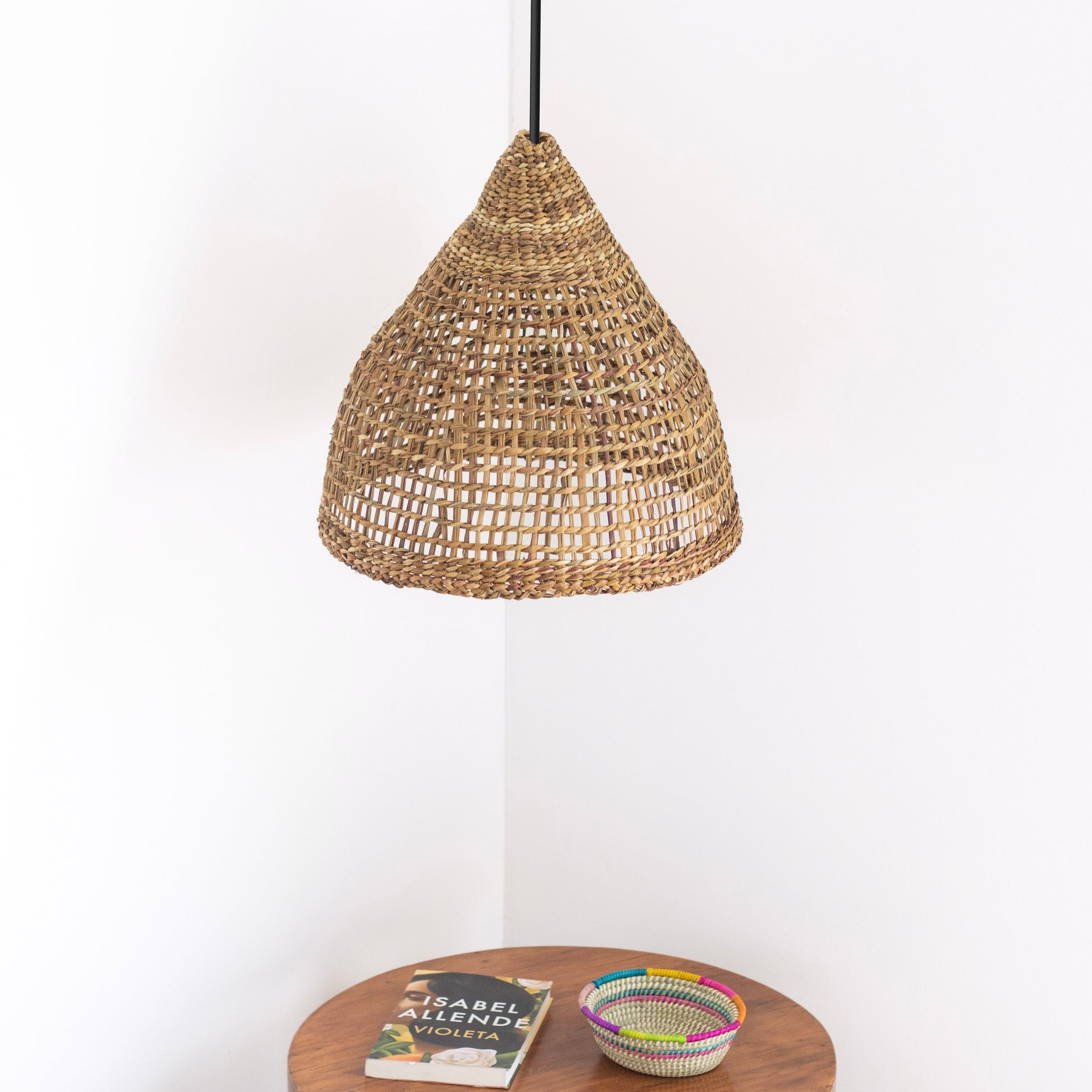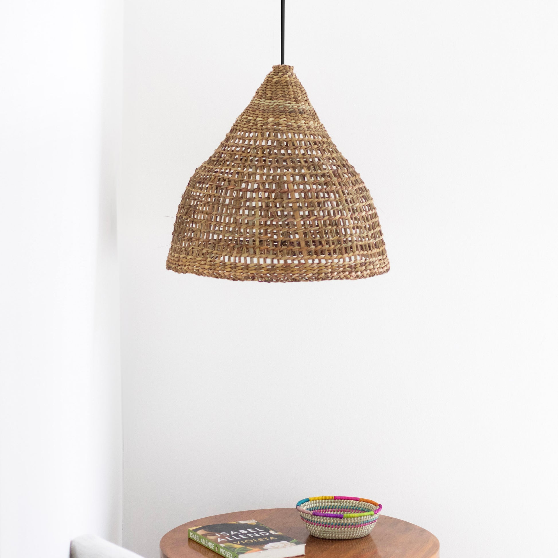 Pantallas de lámpara tejidas a mano por una experta artesana del sur en una de nuestras fibras favoritas, la Manila (Phormium Tenax).